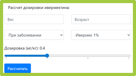 www.ivermec.space/calc/ (там нужно выбрать свой вес, возраст, проблему, форму Иве)