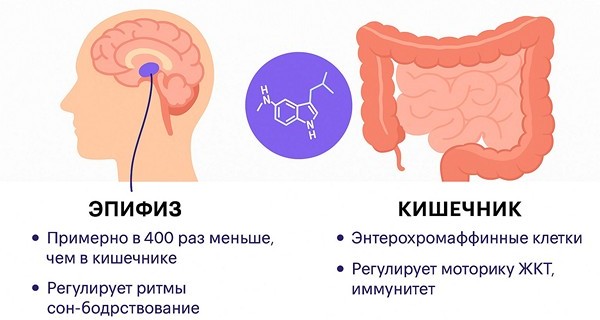 - Кишечный мелатонин регулирует ЖКТ и обеспечивает иммунитет,