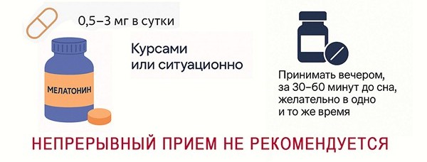 Поэтому, начинать стоит не с таблеток, а с гигиены сна и восстановления собственной выработки мелатонина.
